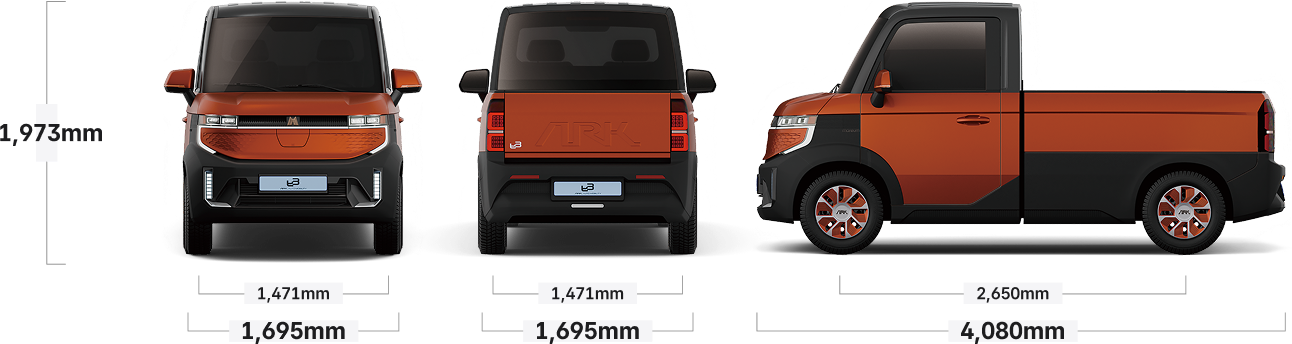 클래딩 클래딩은 도시의 좁은 길을 달리는 상용차에 더욱 필요한 부품입니다. 차체의 외부 표면을 보호하고 스크래치나 흠집을 방지합니다. Full LED 시그니처 헤드램프 운전자의 시야를 선명히 밝혀줄 뿐 아니라 입체적이고 세련된 프런트 스타일을 완성합니다. 유틸리티 박스 실용성과 시인성을 극대화한 설계로, 어떠한 환경에서도 운전자의 의도를 명확하게 전달합니다. 유틸리티 박스 ARK E3의 적재함에는 휠하우스가 없어 더 많은 양의 짐이나 장비를 안정적으로 쌓을 수 있습니다.실용은 손이 닿는 모든 곳에